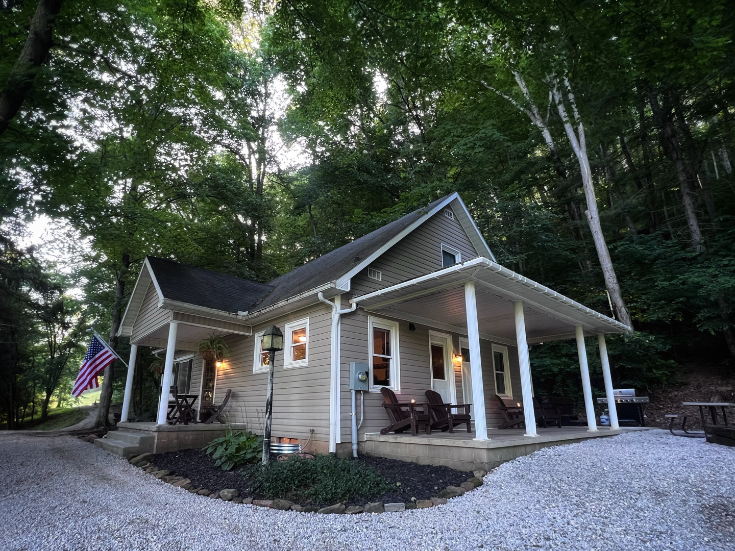 Escape to this brand-new, pet-friendly cabin on 22 private acres in Hocking Hills. Located just minutes from Ash Cave and Old Man’s Cave, it offers a hot tub, wet/dry sauna, wood-burning stove, central air, and a fully stocked kitchen. Enjoy an old-school arcade game, a walking trail through the woods, and frequent wildlife sightings. With rustic charm and modern comforts, plus Jimbo’s Bar & Grill next door, this cozy retreat is the perfect base for your stay.